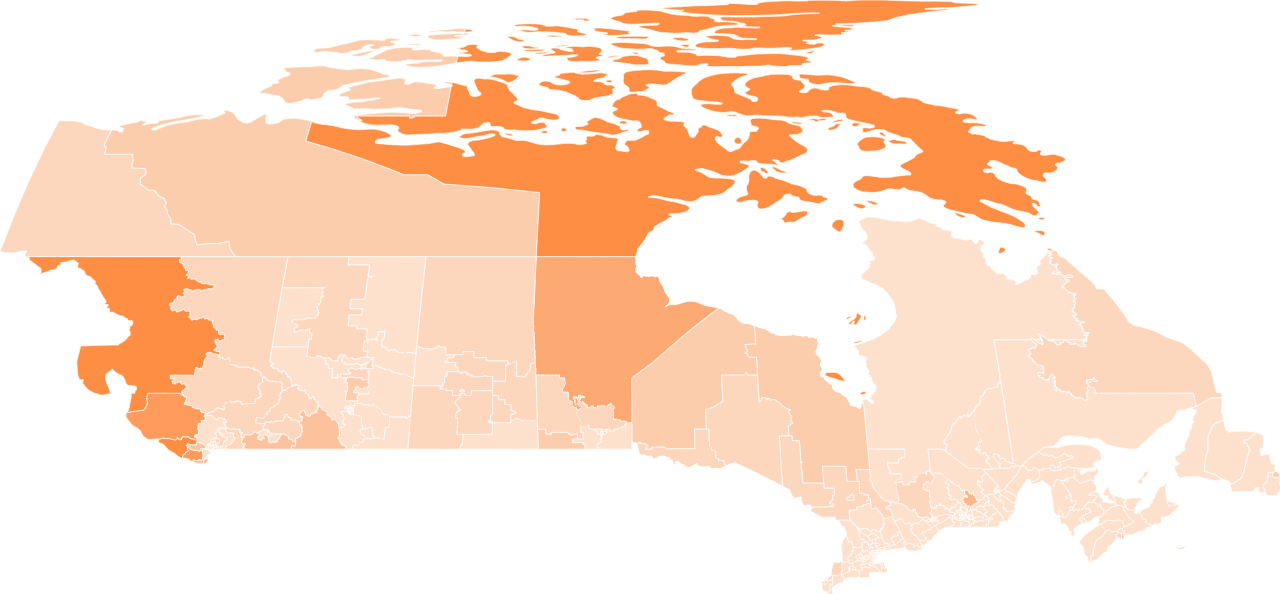 The New Democratic Party (NDP) saw a drop in support to 6.3% of the popular vote (-11.5% drop) and a loss of 17 MPs in the House of Commons. The NDP broke the 40-per-cent level in only three ridings: Edmonton Strathcona (AB), Rosemont-La Petite-Patrie (QC), and Vancouver East (BC). The NDP only broke the 30-per-cent level in 10 other ridings. Source and Credit: CPAC.